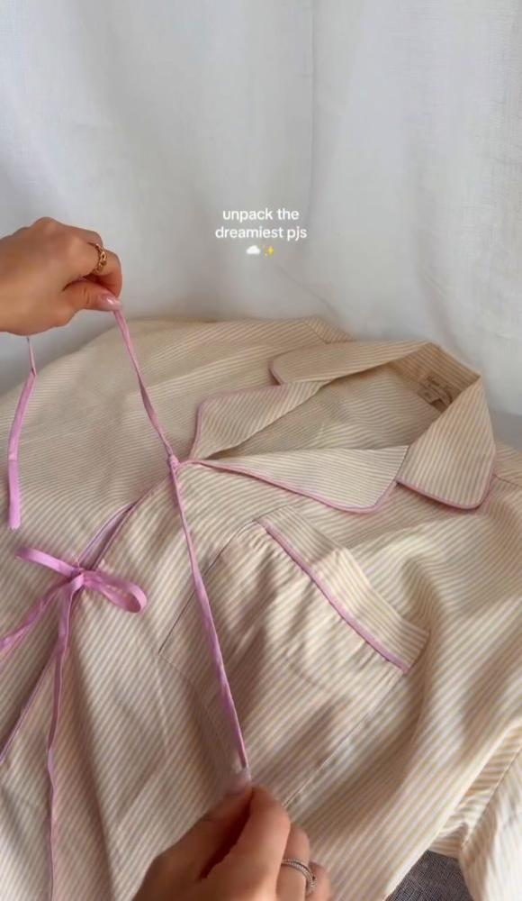 استمتعي بلمسة شخصية مع بيجامة نوم أنيقة بتصميم مخطط بألوان هادئة تجمع بين الراحة والفخامة.