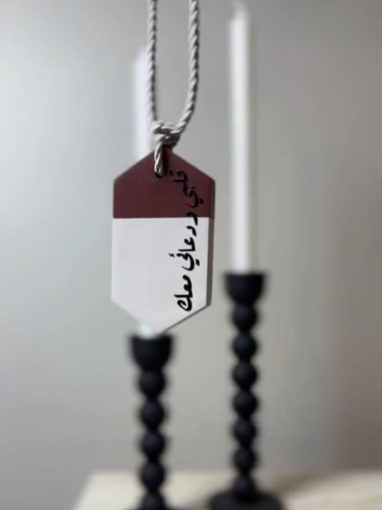 تعليقة لمراية السيارة مصنوعة يدويا ًوتزيّن بلون و عبارة من إختيارك ✨🤩تصميم الاسم او العبارة حسب الطلبلون المادة الأساسي" أبيض "مدة الطلب من 4 الى 6 يومإمكانية الكتابة من الأمام والخلفشكل فخم يكمل جمال سيارتك