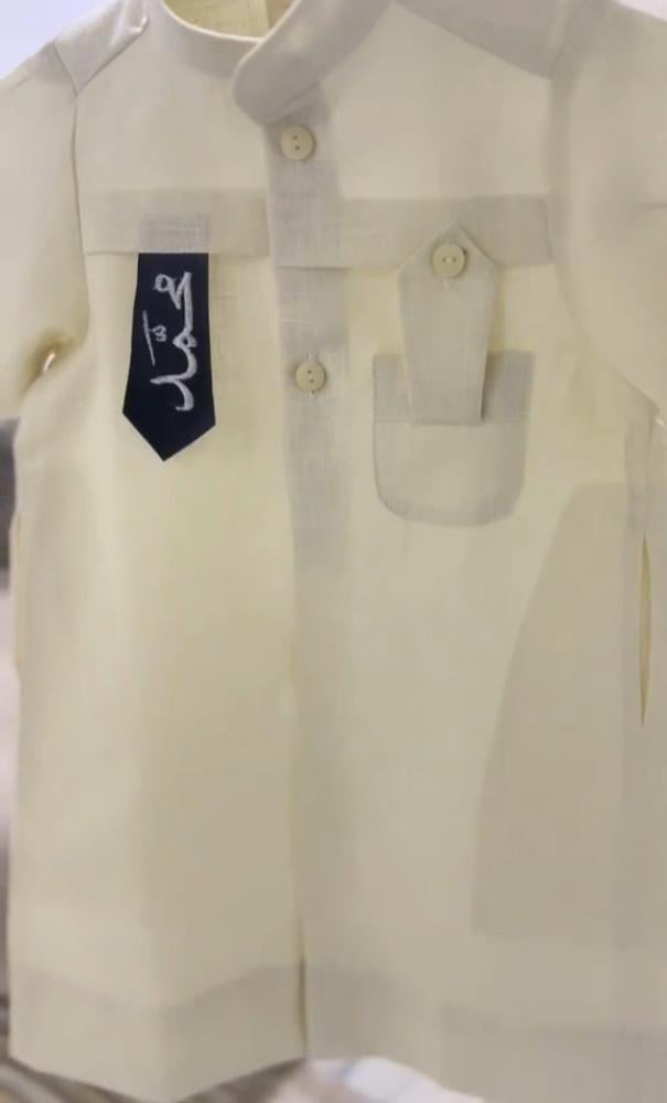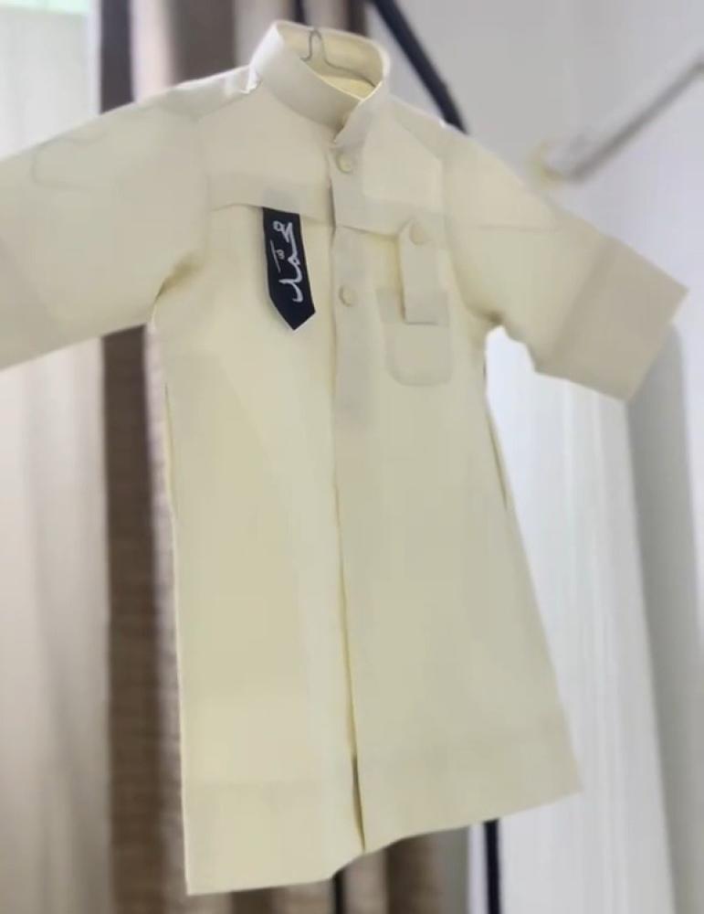 ثوب ولأدي تصميم حسب رغبتك.تطريز الاسم حسب الطلب .ميزي طفلك في مناسباتكم بأجمل اطلاله واجمل ملبوسات بأسمائهمثوب العيد الاكثر أناقة مصممه خصيصاً لأجل طفلك ليكن أنيق بطلته الجميلةمتوفر المقاسات حسب العمر من 6 أشهر إلى 12 سنه.