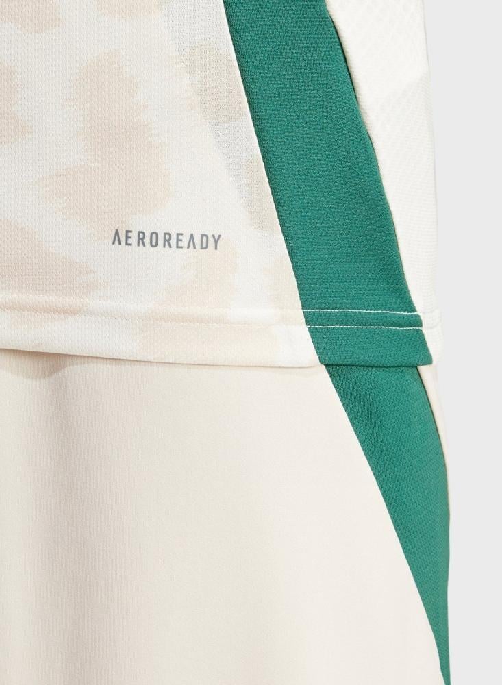 يجتمع التقليد مع الحداثة لمظهر كرة قدم أسطوري. يعكس تصميم قميص روشن الأساسي هذا الأشكال والخطوط للهندسة المعمارية الأخاذة في المملكة العربية السعودية ويجذب الأنظار حقاً. خلف المظهر الجريء، تحافظ تقنية AEROREADY تتحكم بالرطوبة مع أجزاء شبكية ونسيج ناعم بحبكة مزدوجة على راحة اللاعبين والمشجعين. هذا المنتج مصنوع بمواد معاد تدويرها بنسبة %100. تساعد عملية إعادة استخدام المواد التي صنعت من قبل على تقليل النفايات واعتمادنا على الموارد المحدودة وتقليل البصمة الكربونية للمنتجات التي نصنعها.