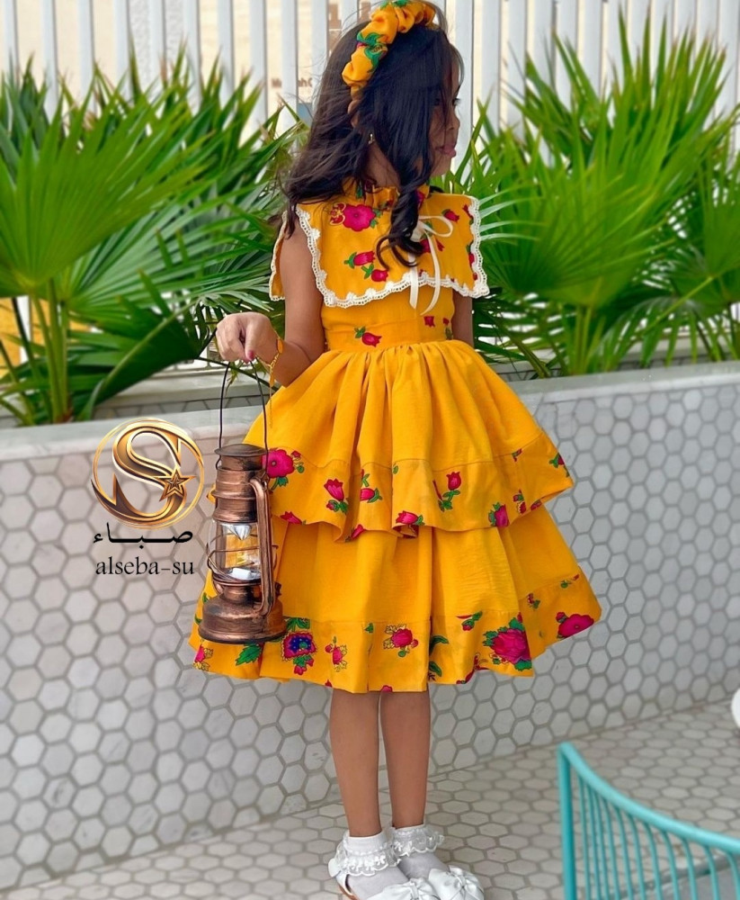 - الفستان عباره عن موديل بشكل حضري. بقماش الشالكي الشعبي التراثي