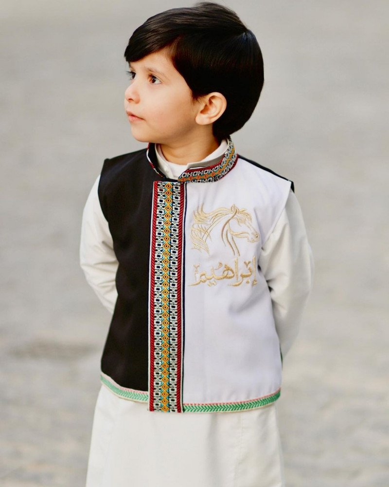 سديري ممزوج بالقوش التراثيه سدوبشكله الانيق باللون الاسود والابيضمتوفر مقاسات حسب العمرمن 6شهر الى 12سنهمع امكانيه اضافه الاسم عليه حسب طلبك**تنبيه**المقاسات تناسب الاجسام النحيفه والمتوسطه
