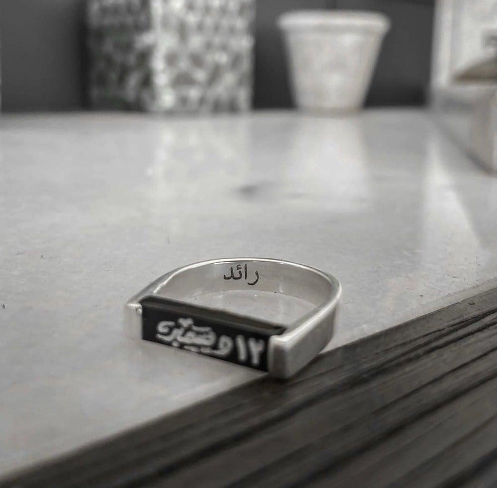 الفن : دقّة الصانع وجودة الصنع لجمال طالعالمواصفات1 امكانية حفر التاريخ حسب الاختيار2 مع تقنية الحفر بالليزر3 الخاتم مصنع من الفضه الايطاليه عيار 9254 امكانية تغير لون الحجر5 يتوفر الخاتم بالون الذهبي والفضي