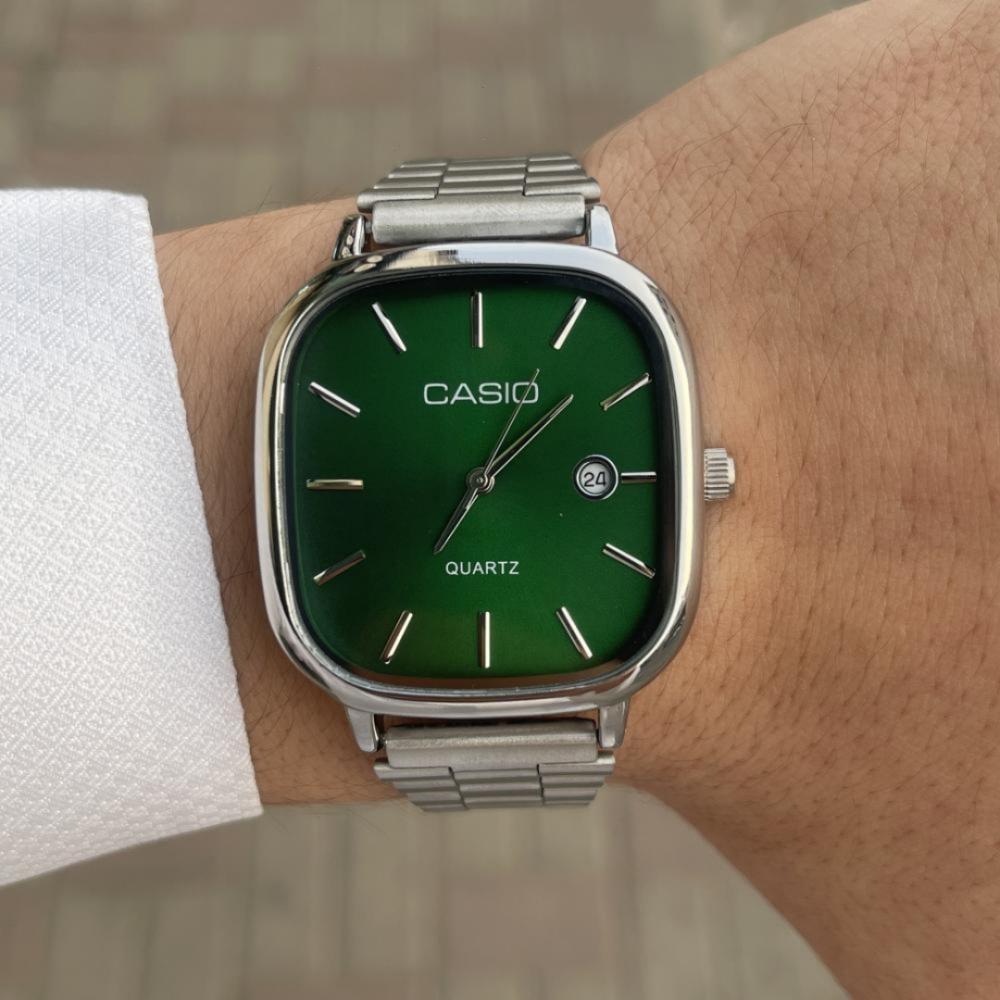 ساعة كاسيو LTP رجاليهمينا اخضرسير فضيالمقاس 38ذات تصميم مميز وعصريمقاومة للماء بشكل سطحيتحكم بمقاس السير بشكل سلستوصلك في باكج مرتب ومناسب للإهداء