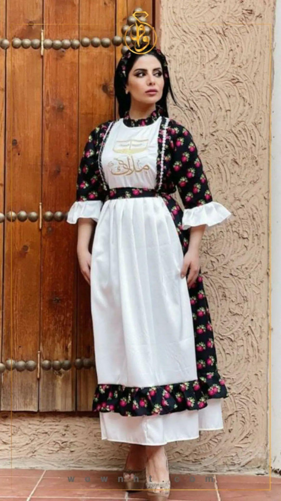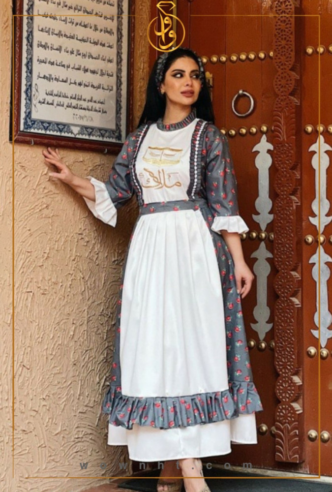 الجلابية عباره عن موديل بشكل حضري. مدموج بقماش الشالكي الشعبي التراثي ممزوج بنقوش السدو للحضاره العريقه والاصليه