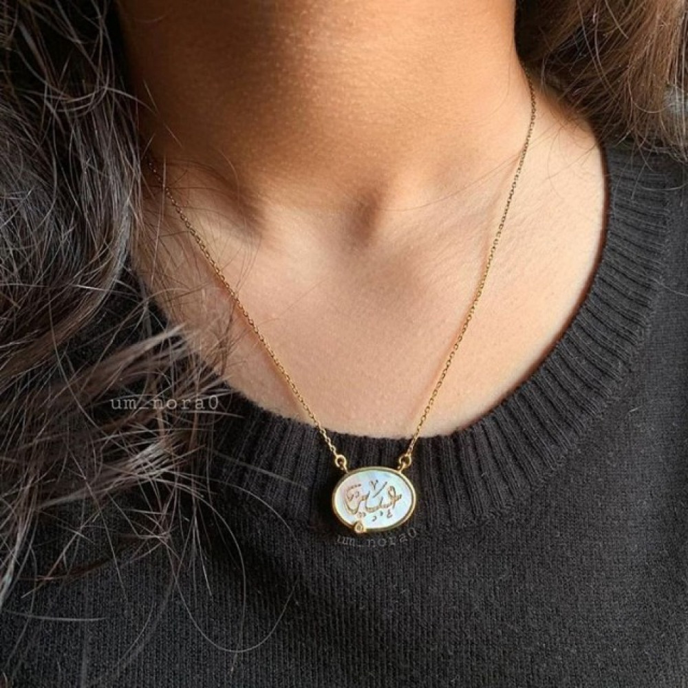 الموصفاتحجر صدف أفريقي.بامكانك طلب السلسال بالاسم اللي تبيهفضه اصليه خام ايطالي عيار 925قيراطمطلي ذهب عيار 21 قيراط