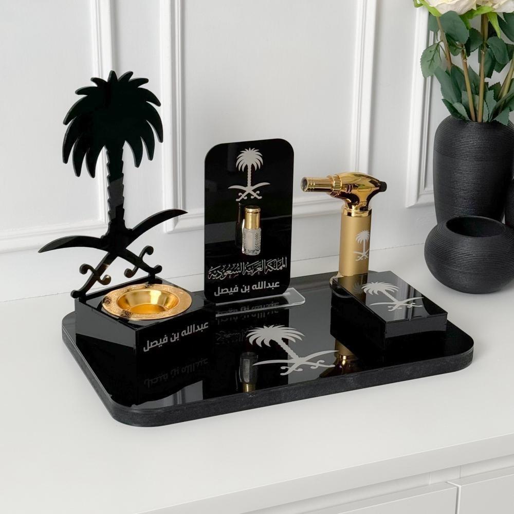تفاصيل المنتجيتكون العرض من :ولاعة فاخرةعلبة بخورصينية بشعار سيفين ونخلةمبخرة سيفين ونخلةمسك وحامل مسكالمقاسات :الطول : 38 سمالعرض 24 سمالأرتفاع :28 سم