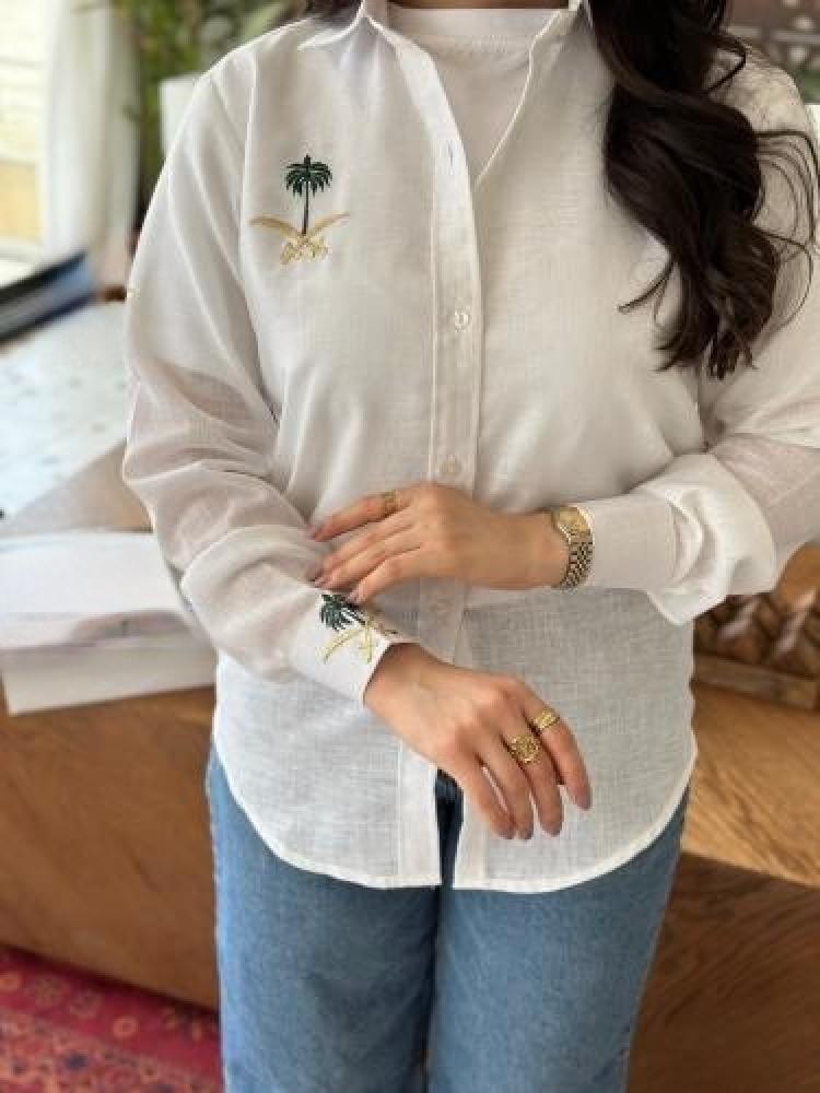 مع تطريز سيفين ونخلة كبير بالخلف حدود ٢٠ سم + صغير من الأمام حدود ٧ سم
