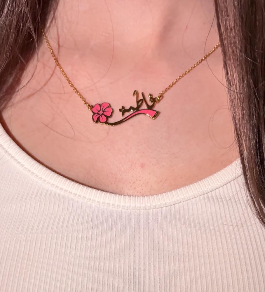 سلسال بينك بالاسم مع ووردة أنيقة