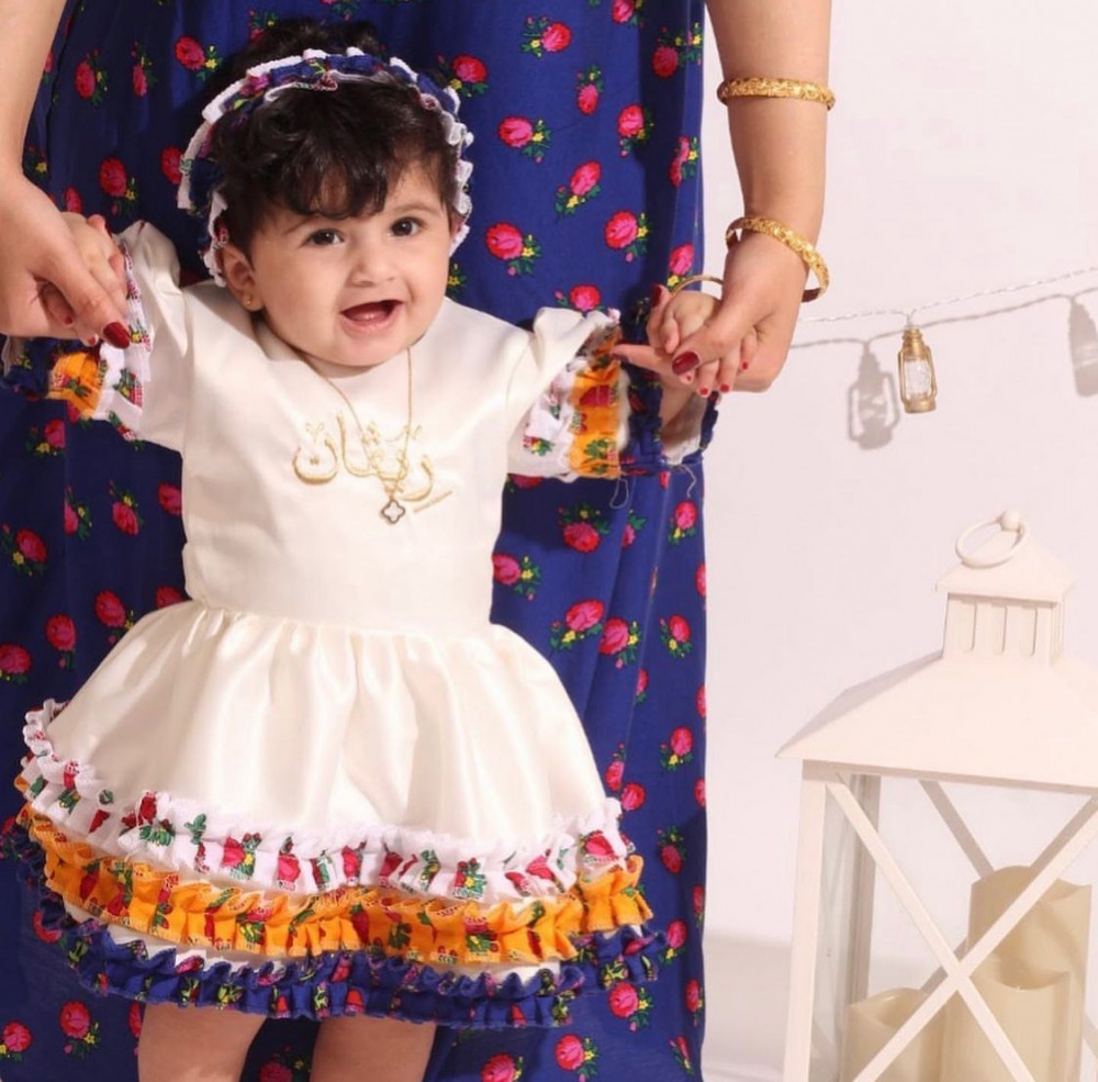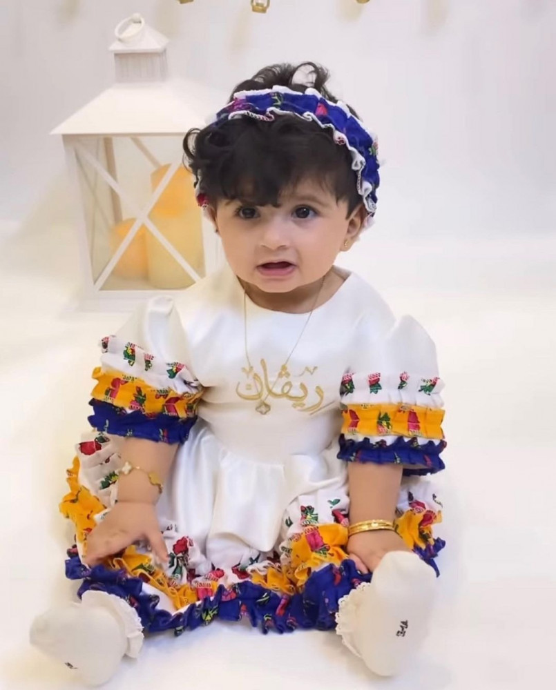 - الفستان عباره عن موديل بشكل حضري. بقماش الشالكي الشعبي التراثي