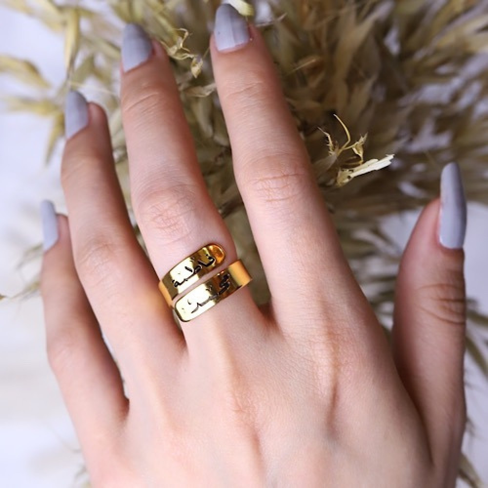 صمم بكل نعومة مع بعض من التفاصيل البسيطة لتتفرّديمواصفات المنتج:تصميم الاسم حسب الطلبسهلة التحكم بالمقاسمتوفر بلونين مطلي ذهب او فضهمضمون مايتغير لونهالحفر بتقنية الليزر